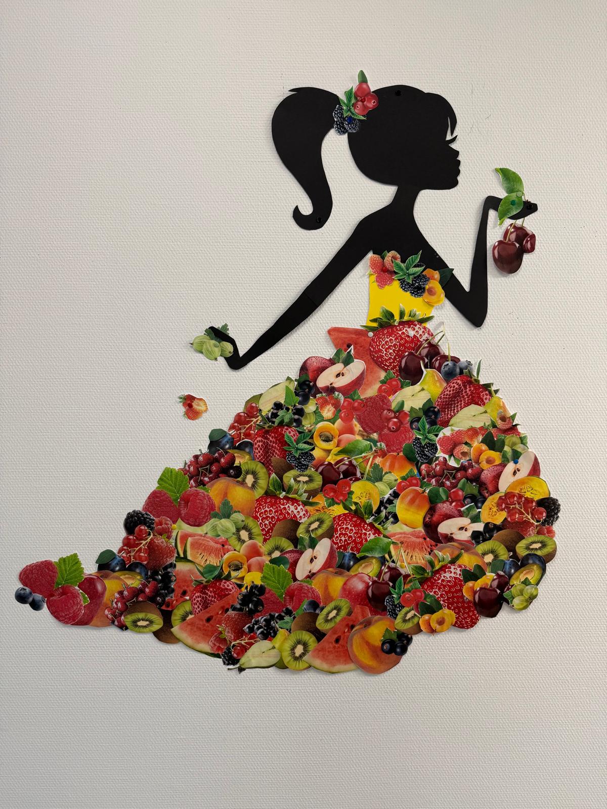Im Juli ging es bei uns wieder einmal kreativ zu. Unsere „Schattenfrau“ bekam ein ganz besonderes, zur Jahreszeit passendes Kleid – gestaltet aus vielen bunten Früchten. Dafür schnitten und klebten wir fleißig Tonpapier, bis ein farbenfrohes Sommerkleid entstand.