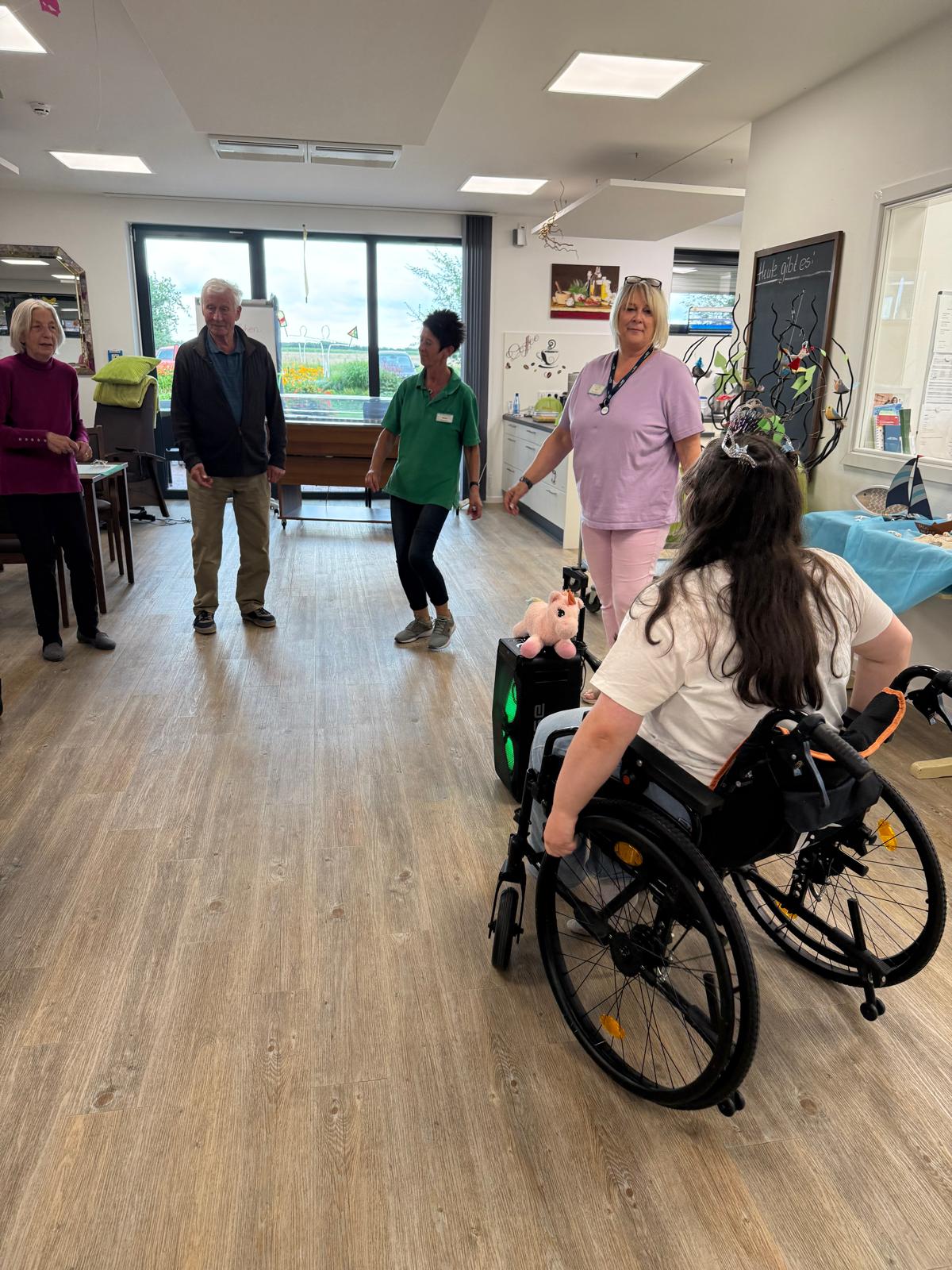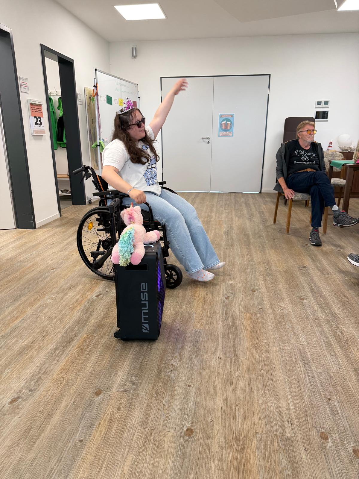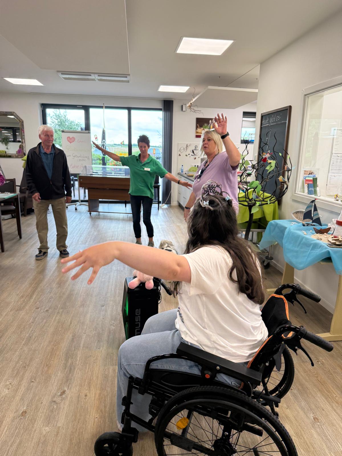 Ein besonderes Highlight war die Geburtstagsfeier. Unsere Geburtstagsgäste dürfen sich immer einen Kuchen wünschen und nach dem Kaffeetrinken ein Musikstück auswählen. Dieses Mal führte der Musikwunsch zu einer fröhlichen Überraschung: Alle Gäste wurden zum Tanz aufgefordert – und es wurde ausgelassen gefeiert.