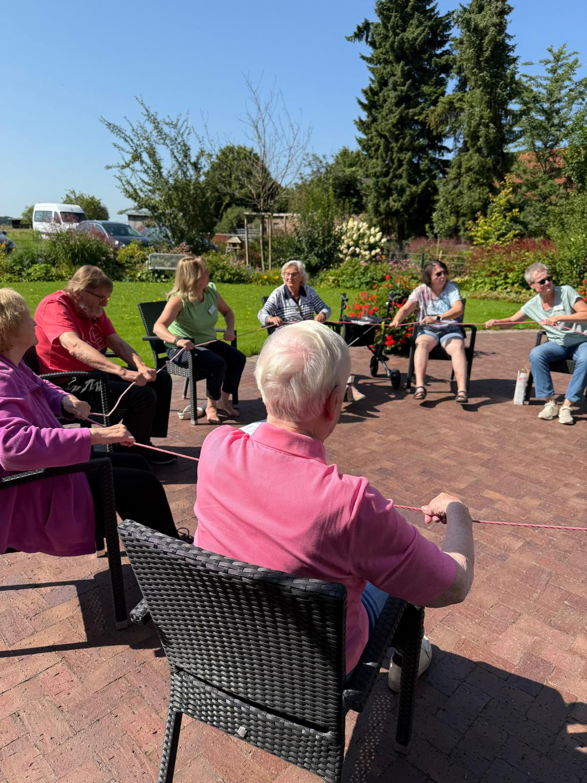 Bei sommerlichen Temperaturen haben wir die angenehme Morgenfrische genutzt – entweder für unsere Gruppenangebote wie „Bewegungsübungen mit der Zauberschnur“ oder für ein gemütliches Frühstück auf der Terrasse.