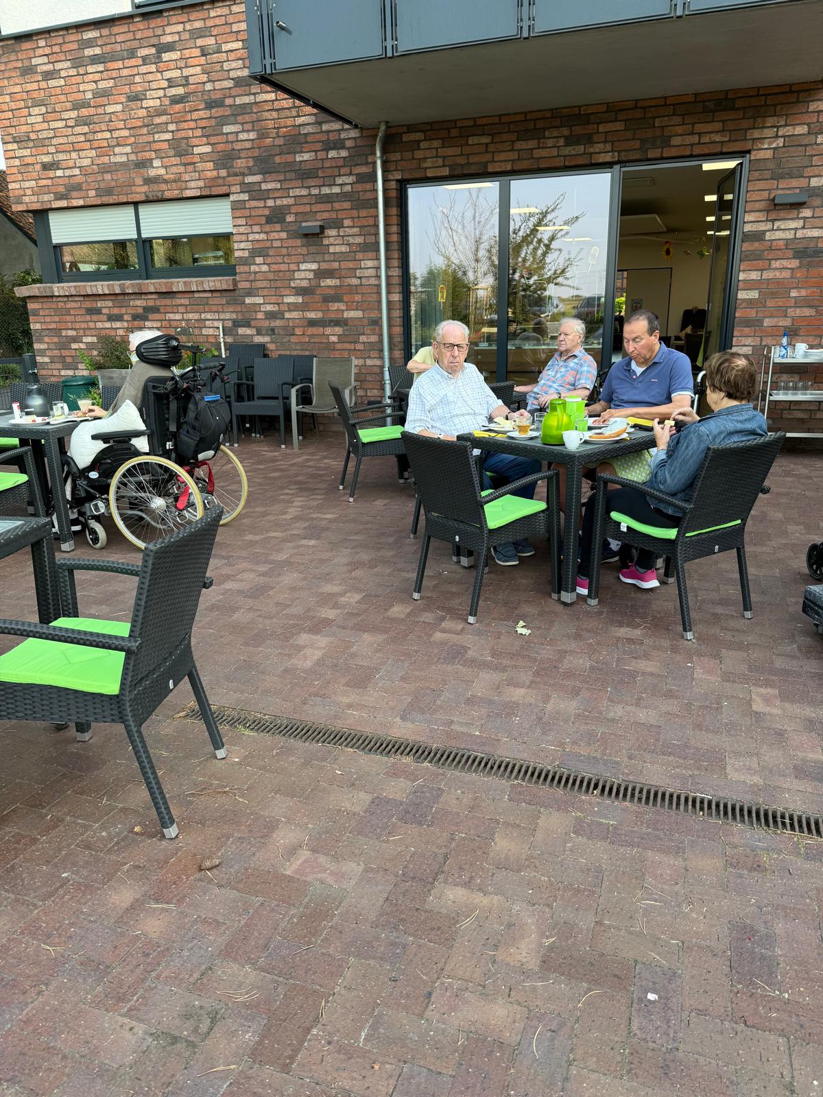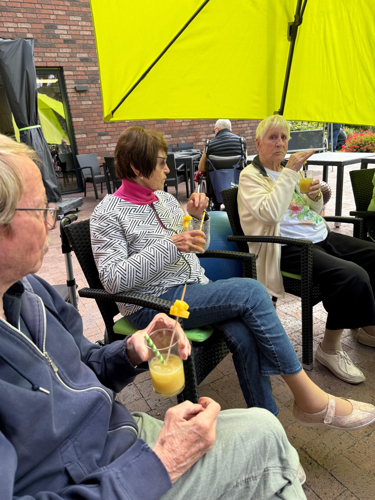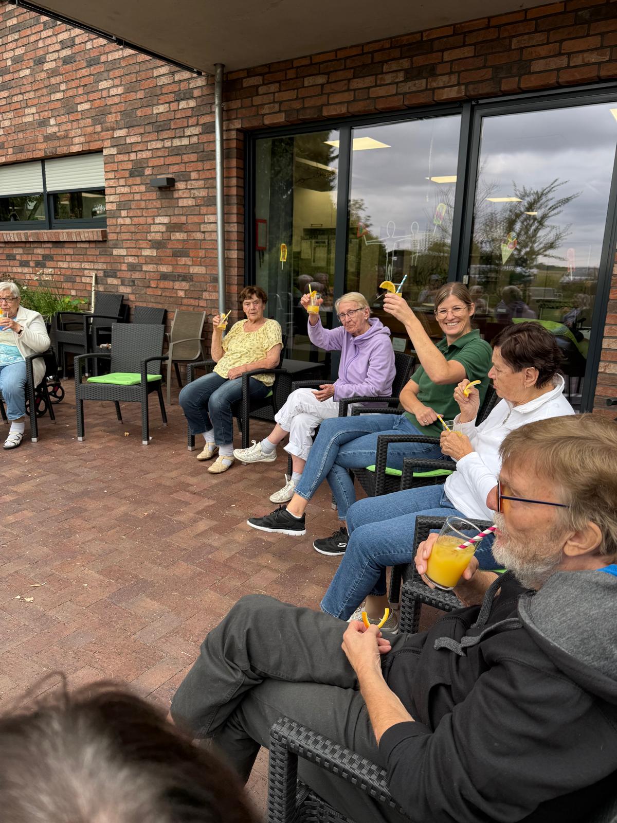 Ein besonderes Highlight war die Einladung ehemaliger Tagesgäste, die inzwischen aus gesundheitlichen Gründen in das Pflegeheim „Lindenriek“ umgezogen sind. Sie wurden herzlich zu unserer Grillparty eingeladen. Mit großer Freude wurde dieses Wiedersehen gefeiert – es wurde geklönt, gelacht und gemeinsam gegessen. Neben frisch gegrillten Würstchen und einer Auswahl an leckeren Salaten rundete ein Eisbecher für jeden Gast das gelungene Fest ab.