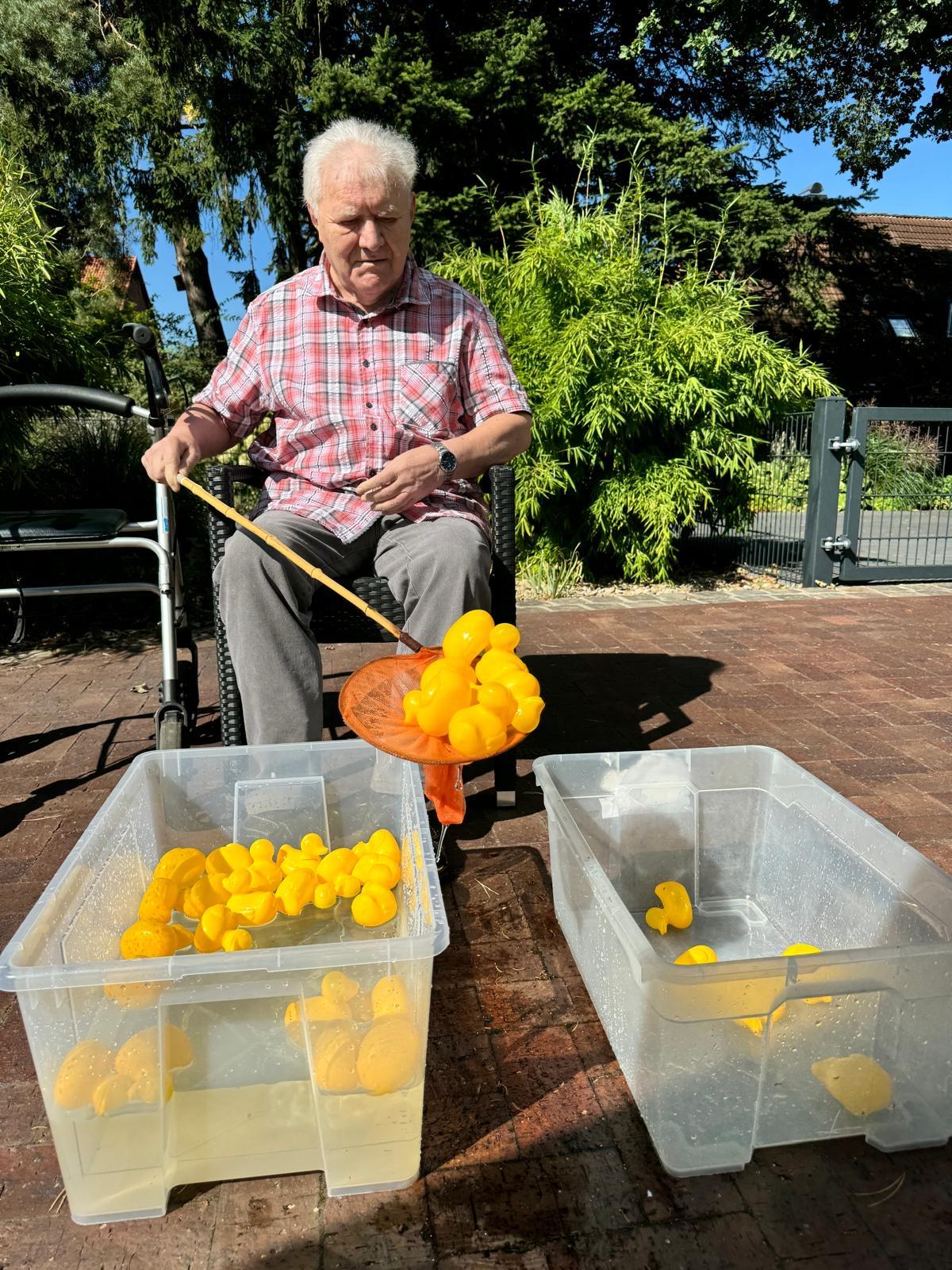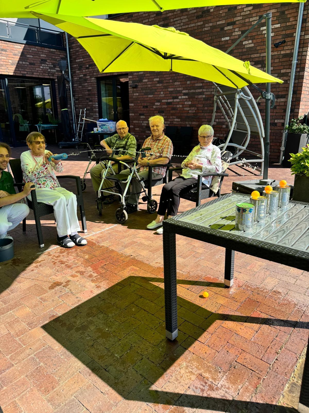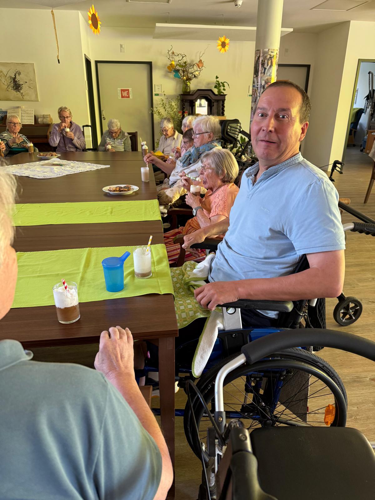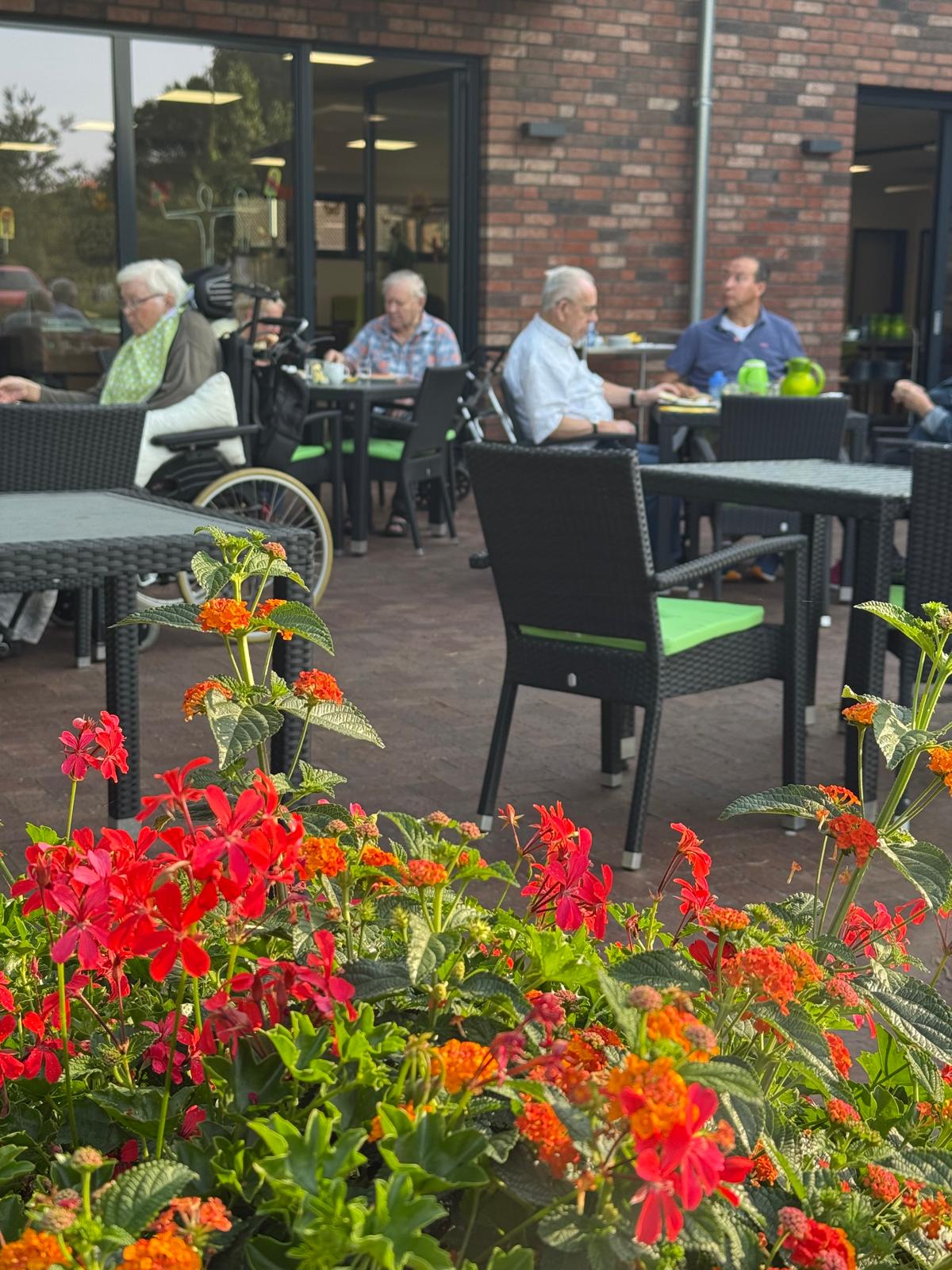 Ein besonderes Highlight war die Einladung ehemaliger Tagesgäste, die inzwischen aus gesundheitlichen Gründen in das Pflegeheim „Lindenriek“ umgezogen sind. Sie wurden herzlich zu unserer Grillparty eingeladen. Mit großer Freude wurde dieses Wiedersehen gefeiert – es wurde geklönt, gelacht und gemeinsam gegessen. Neben frisch gegrillten Würstchen und einer Auswahl an leckeren Salaten rundete ein Eisbecher für jeden Gast das gelungene Fest ab.