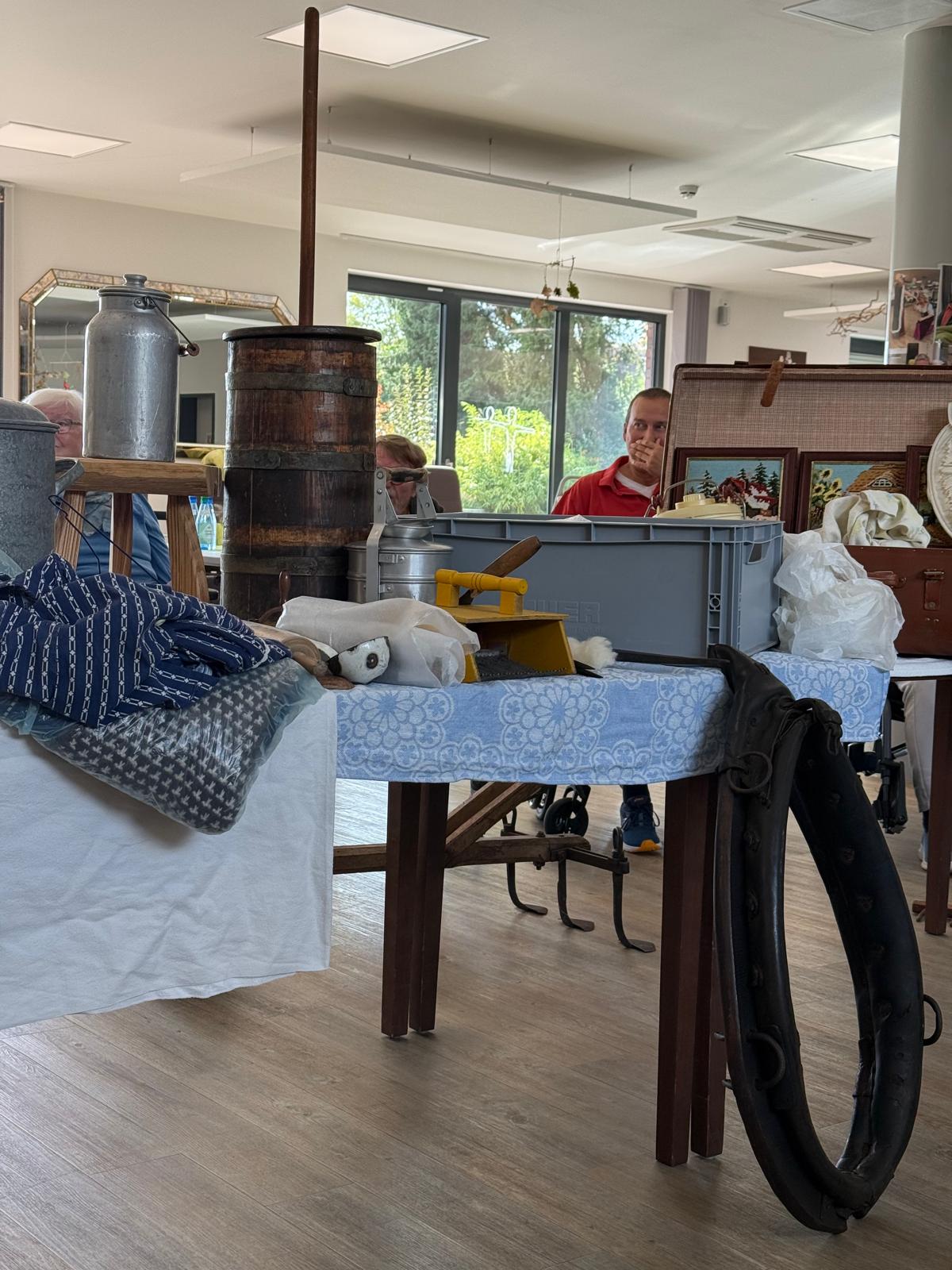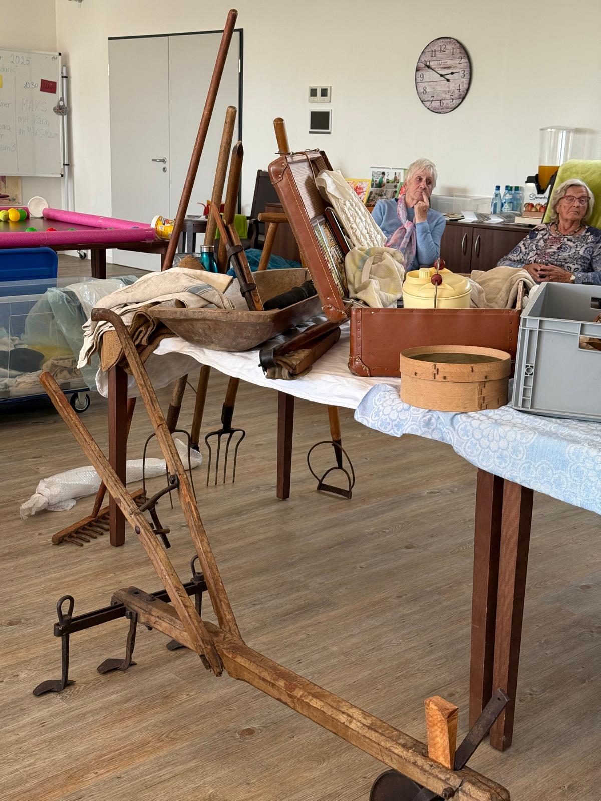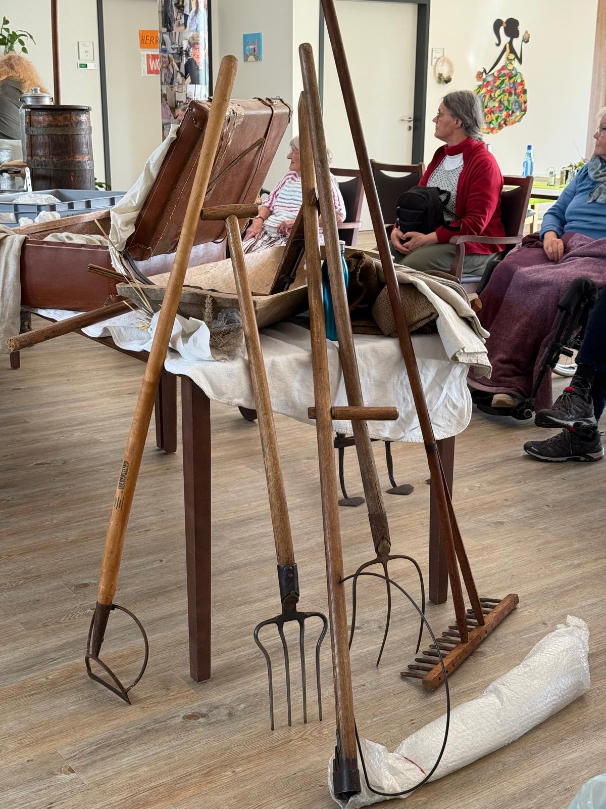 auf besondere Weise bereichert. Ein weiteres Highlight war der Besuch von Frau Brandes mit ihrem „Museum aus dem Koffer“. Für viele unserer Gäste ist ein Museumsbesuch leider nicht mehr möglich – umso schöner, dass das Museum direkt zu uns kam. Im Koffer befanden sich zahlreiche alte Geräte rund um das Thema „Landwirtschaft früher“. Beim Betrachten und Anfassen wurden viele Erinnerungen geweckt, Geschichten erzählt und Erfahrungen ausgetauscht.