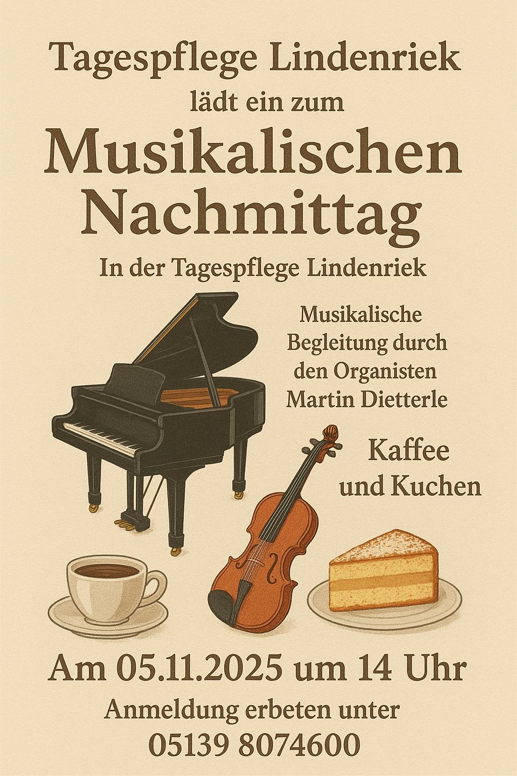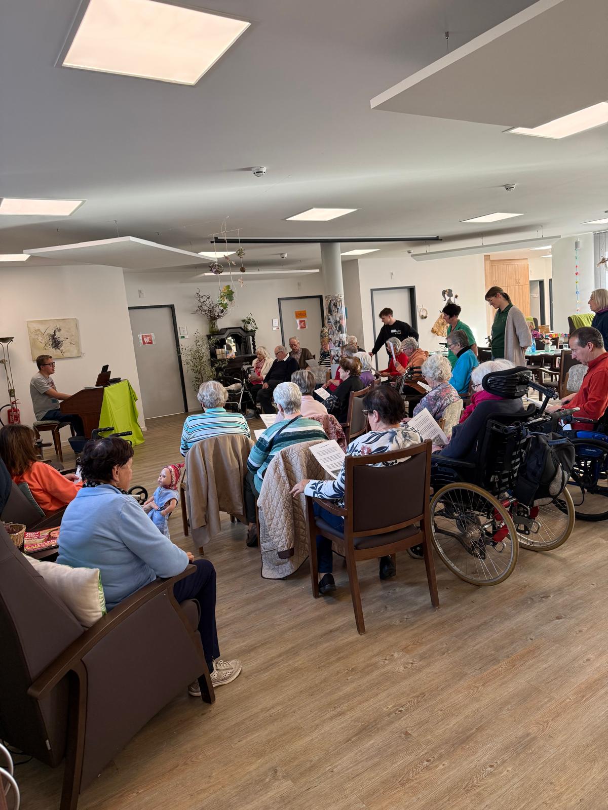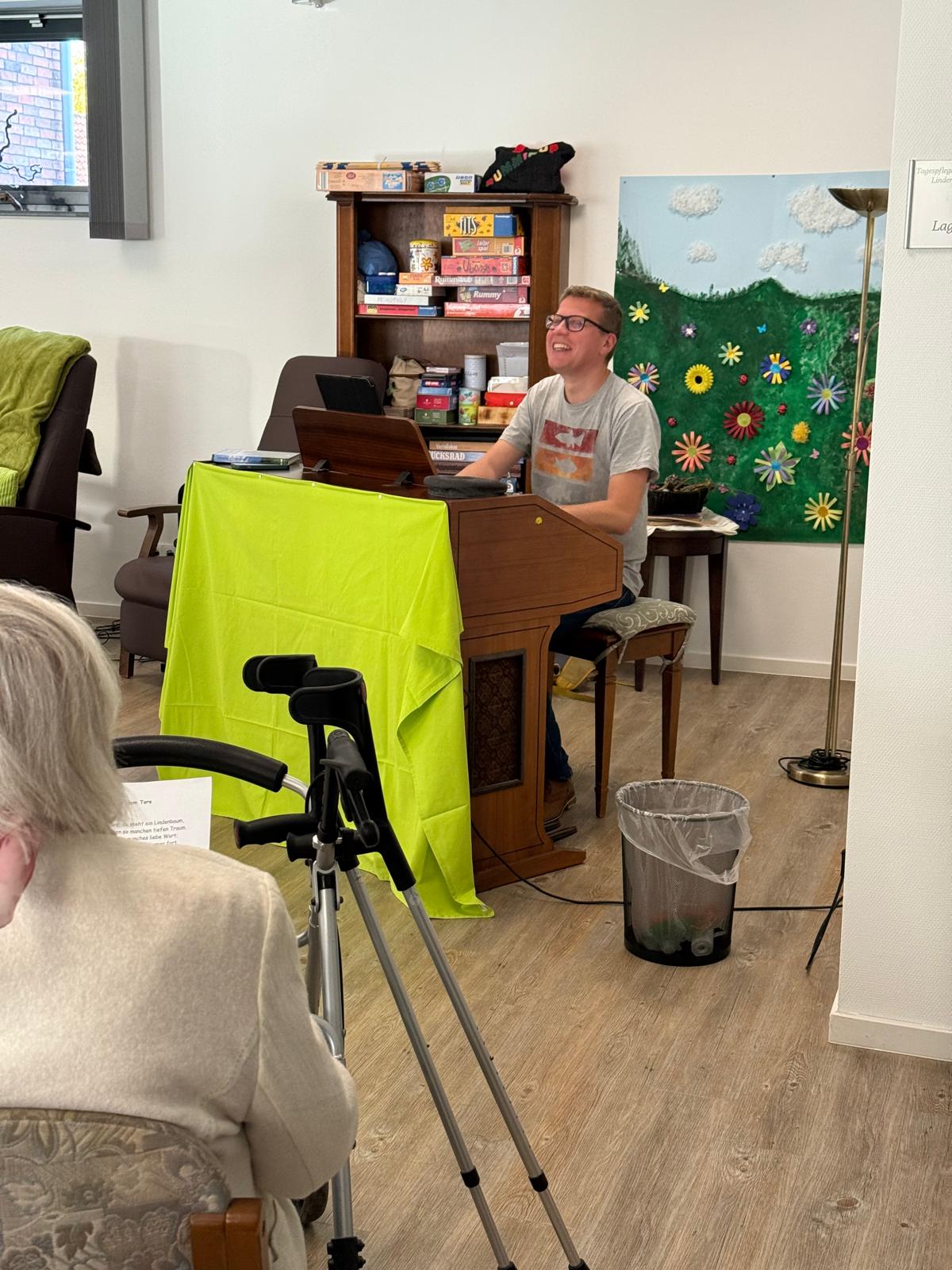 Im November lud die Tagespflege zu einem musikalischen Nachmittag ein. Gemeinsam wurden bekannte Volkslieder gesungen, begleitet vom sympathischen Organisten Martin Dietterle, der mit seinem Witz und Humor für beste Stimmung sorgte. Zwischendurch konnten sich unsere Gäste bei einer Tasse Kaffee und selbstgebackenem Kuchen stärken und die gemütliche Atmosphäre genießen.