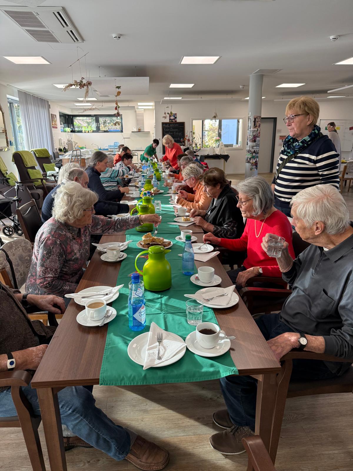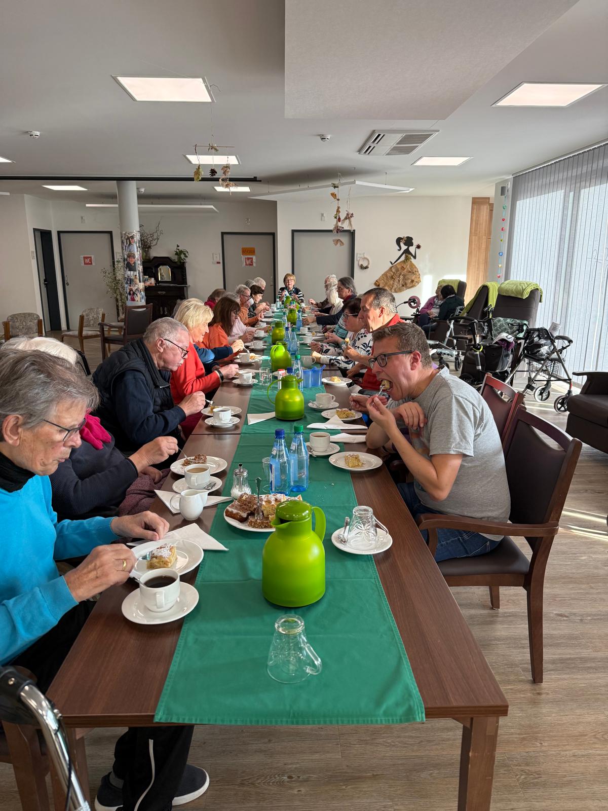 Unsere ehemaligen Tagesgäste, die aus gesundheitlichen Gründen ihre Häuslichkeit aufgeben mussten und ins Pflegeheim Lindenriek umgezogen sind, wurden zur Kaffeetafel geladen. Es wurde nett geplaudert und gemeinsame Erinnerungen ausgetauscht.